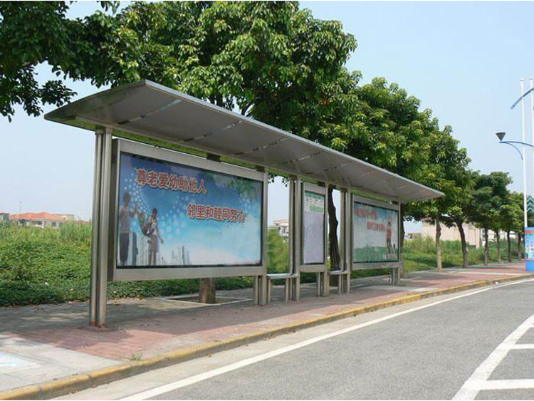公交車候車亭一般是與公交站牌相配套的,為方便公交乘客候車時遮陽、防雨等,在車站、道路兩旁或綠化帶的港灣式公交停靠站上建設(shè)的交通設(shè)施。由于城市公交的日益發(fā)達(dá),候車亭已發(fā)展成為城市一個不可或缺的重要組成部分,設(shè)計精美的候車亭也成為了城市一道美麗的風(fēng)景。 一般候車亭棚體主要頂棚、立柱、頂弓、廣告燈箱和坐凳組成,也有用隔板來代替廣告燈箱的。