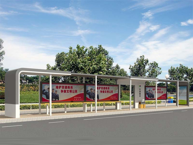 公交車候車亭一般是與公交站牌相配套的,為方便公交乘客候車時遮陽、防雨等,在車站、道路兩旁或綠化帶的港灣式公交?空旧辖ㄔO(shè)的交通設(shè)施。由于城市公交的日益發(fā)達,候車亭已發(fā)展成為城市一個不可或缺的重要組成部分,設(shè)計精美的候車亭也成為了城市一道美麗的風景。 一般候車亭棚體主要頂棚、立柱、頂弓、廣告燈箱和坐凳組成,也有用隔板來代替廣告燈箱的。