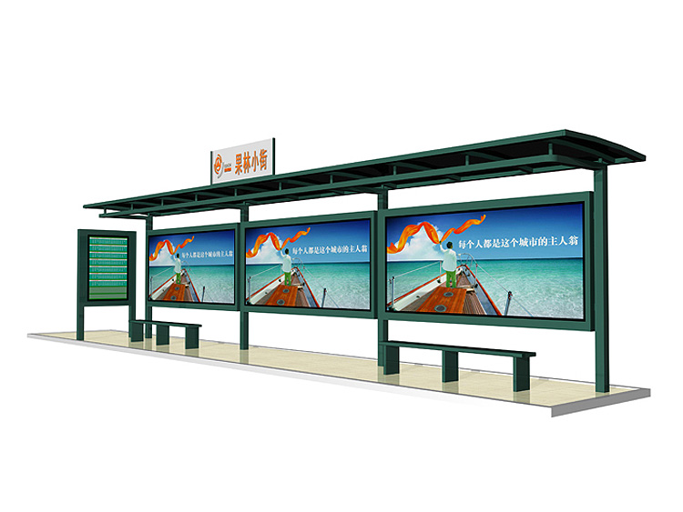 公交車候車亭一般是與公交站牌相配套的,為方便公交乘客候車時遮陽、防雨等,在車站、道路兩旁或綠化帶的港灣式公交?空旧辖ㄔO的交通設施。由于城市公交的日益發(fā)達,候車亭已發(fā)展成為城市一個不可或缺的重要組成部分,設計精美的候車亭也成為了城市一道美麗的風景。 一般候車亭棚體主要頂棚、立柱、頂弓、廣告燈箱和坐凳組成,也有用隔板來代替廣告燈箱的。