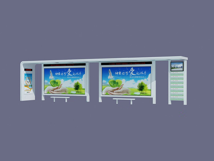 公交車候車亭一般是與公交站牌相配套的,為方便公交乘客候車時(shí)遮陽(yáng)、防雨等,在車站、道路兩旁或綠化帶的港灣式公交?空旧辖ㄔO(shè)的交通設(shè)施。由于城市公交的日益發(fā)達(dá),候車亭已發(fā)展成為城市一個(gè)不可或缺的重要組成部分,設(shè)計(jì)精美的候車亭也成為了城市一道美麗的風(fēng)景。 一般候車亭棚體主要頂棚、立柱、頂弓、廣告燈箱和坐凳組成,也有用隔板來代替廣告燈箱的。