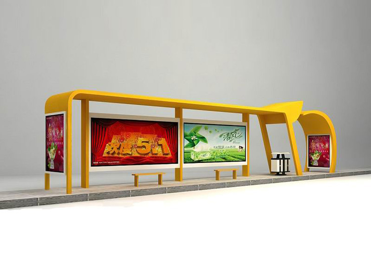 公交車候車亭一般是與公交站牌相配套的,為方便公交乘客候車時遮陽、防雨等,在車站、道路兩旁或綠化帶的港灣式公交?空旧辖ㄔO(shè)的交通設(shè)施。由于城市公交的日益發(fā)達(dá),候車亭已發(fā)展成為城市一個不可或缺的重要組成部分,設(shè)計(jì)精美的候車亭也成為了城市一道美麗的風(fēng)景。 一般候車亭棚體主要頂棚、立柱、頂弓、廣告燈箱和坐凳組成,也有用隔板來代替廣告燈箱的。