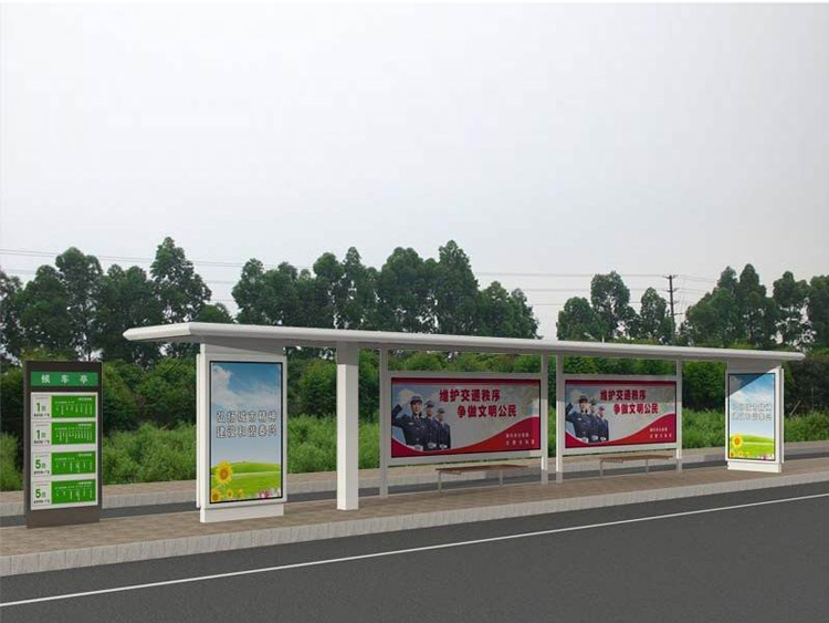 公交車候車亭一般是與公交站牌相配套的,為方便公交乘客候車時(shí)遮陽(yáng)、防雨等,在車站、道路兩旁或綠化帶的港灣式公交?空旧辖ㄔO(shè)的交通設(shè)施。由于城市公交的日益發(fā)達(dá),候車亭已發(fā)展成為城市一個(gè)不可或缺的重要組成部分,設(shè)計(jì)精美的候車亭也成為了城市一道美麗的風(fēng)景。 一般候車亭棚體主要頂棚、立柱、頂弓、廣告燈箱和坐凳組成,也有用隔板來代替廣告燈箱的。