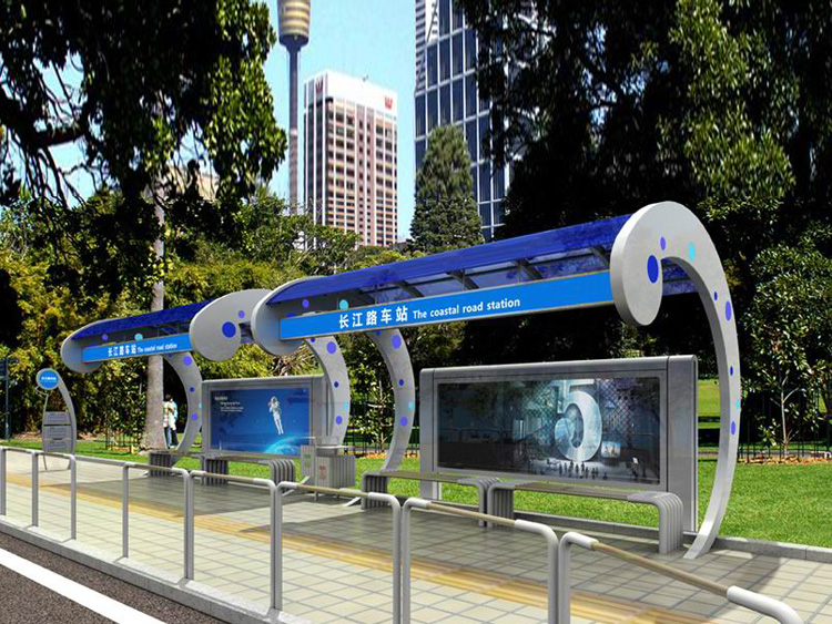 公交車候車亭一般是與公交站牌相配套的,為方便公交乘客候車時遮陽、防雨等,在車站、道路兩旁或綠化帶的港灣式公交?空旧辖ㄔO(shè)的交通設(shè)施。由于城市公交的日益發(fā)達(dá),候車亭已發(fā)展成為城市一個不可或缺的重要組成部分,設(shè)計精美的候車亭也成為了城市一道美麗的風(fēng)景。 一般候車亭棚體主要頂棚、立柱、頂弓、廣告燈箱和坐凳組成,也有用隔板來代替廣告燈箱的。