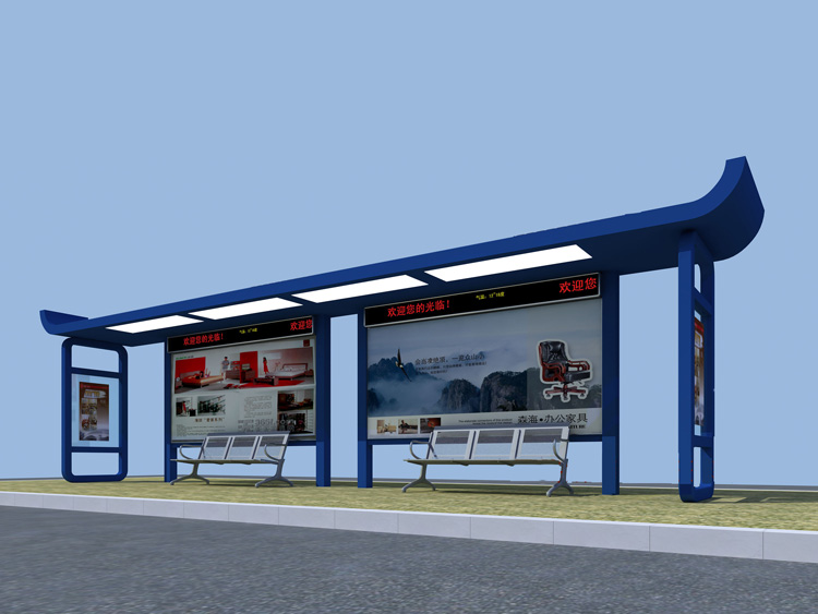 公交車候車亭一般是與公交站牌相配套的,為方便公交乘客候車時(shí)遮陽、防雨等,在車站、道路兩旁或綠化帶的港灣式公交停靠站上建設(shè)的交通設(shè)施。由于城市公交的日益發(fā)達(dá),候車亭已發(fā)展成為城市一個(gè)不可或缺的重要組成部分,設(shè)計(jì)精美的候車亭也成為了城市一道美麗的風(fēng)景。 一般候車亭棚體主要頂棚、立柱、頂弓、廣告燈箱和坐凳組成,也有用隔板來代替廣告燈箱的。