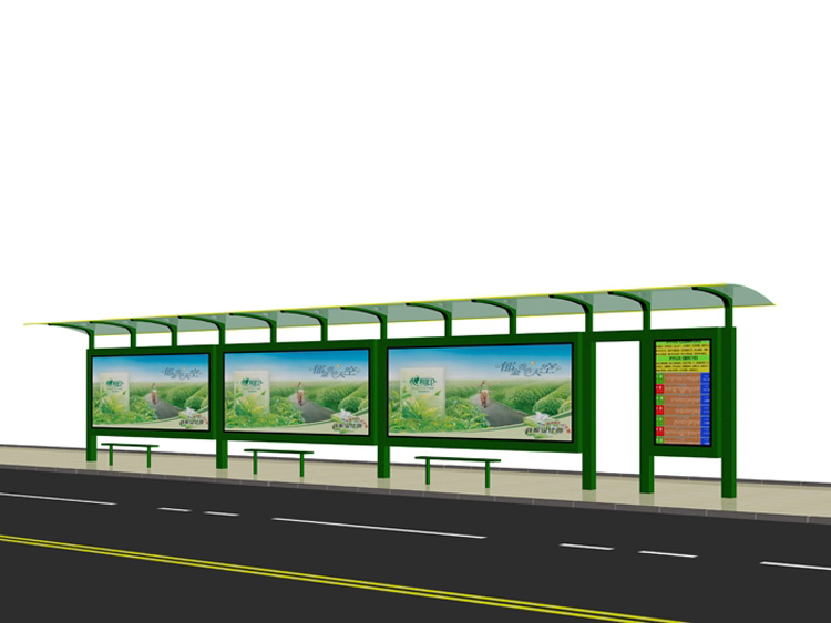 公交車候車亭一般是與公交站牌相配套的,為方便公交乘客候車時(shí)遮陽、防雨等,在車站、道路兩旁或綠化帶的港灣式公交停靠站上建設(shè)的交通設(shè)施。由于城市公交的日益發(fā)達(dá),候車亭已發(fā)展成為城市一個(gè)不可或缺的重要組成部分,設(shè)計(jì)精美的候車亭也成為了城市一道美麗的風(fēng)景。 一般候車亭棚體主要頂棚、立柱、頂弓、廣告燈箱和坐凳組成,也有用隔板來代替廣告燈箱的。