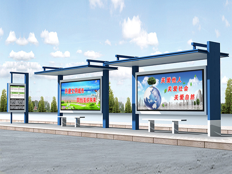 公交車候車亭一般是與公交站牌相配套的,為方便公交乘客候車時遮陽、防雨等,在車站、道路兩旁或綠化帶的港灣式公交?空旧辖ㄔO(shè)的交通設(shè)施。由于城市公交的日益發(fā)達,候車亭已發(fā)展成為城市一個不可或缺的重要組成部分,設(shè)計精美的候車亭也成為了城市一道美麗的風(fēng)景。 一般候車亭棚體主要頂棚、立柱、頂弓、廣告燈箱和坐凳組成,也有用隔板來代替廣告燈箱的。