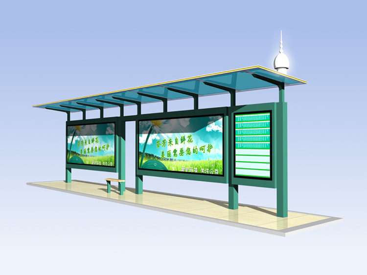 公交車候車亭一般是與公交站牌相配套的,為方便公交乘客候車時遮陽、防雨等,在車站、道路兩旁或綠化帶的港灣式公交?空旧辖ㄔO(shè)的交通設(shè)施。由于城市公交的日益發(fā)達(dá),候車亭已發(fā)展成為城市一個不可或缺的重要組成部分,設(shè)計精美的候車亭也成為了城市一道美麗的風(fēng)景。 一般候車亭棚體主要頂棚、立柱、頂弓、廣告燈箱和坐凳組成,也有用隔板來代替廣告燈箱的。