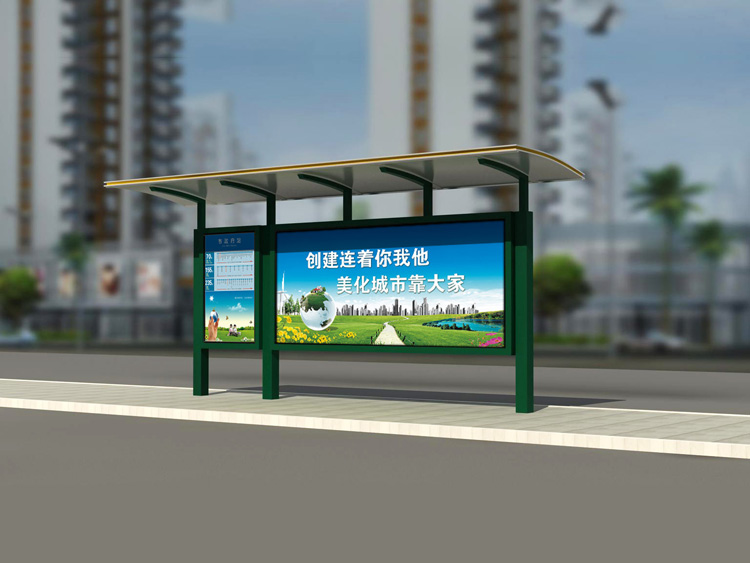 公交車候車亭一般是與公交站牌相配套的,為方便公交乘客候車時遮陽、防雨等,在車站、道路兩旁或綠化帶的港灣式公交?空旧辖ㄔO的交通設施。由于城市公交的日益發(fā)達,候車亭已發(fā)展成為城市一個不可或缺的重要組成部分,設計精美的候車亭也成為了城市一道美麗的風景。 一般候車亭棚體主要頂棚、立柱、頂弓、廣告燈箱和坐凳組成,也有用隔板來代替廣告燈箱的。
