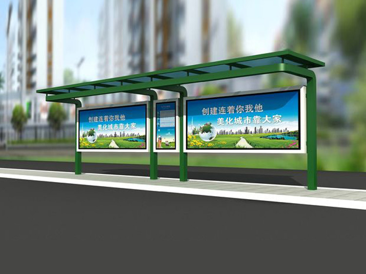 公交車候車亭一般是與公交站牌相配套的,為方便公交乘客候車時遮陽、防雨等,在車站、道路兩旁或綠化帶的港灣式公交?空旧辖ㄔO的交通設施。由于城市公交的日益發(fā)達,候車亭已發(fā)展成為城市一個不可或缺的重要組成部分,設計精美的候車亭也成為了城市一道美麗的風景。 一般候車亭棚體主要頂棚、立柱、頂弓、廣告燈箱和坐凳組成,也有用隔板來代替廣告燈箱的。