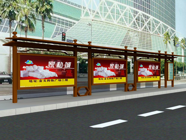 我公司專(zhuān)業(yè)生產(chǎn)公交站臺(tái)、候車(chē)亭、不銹鋼公交候車(chē)亭、鋁合金公交候車(chē)亭、仿古候車(chē)亭、公共自行車(chē)棚、公共自行車(chē)亭、自行車(chē)服務(wù)亭、出租車(chē)的士亭、公交電子站牌、宣傳欄燈箱、閱報(bào)欄燈箱、崗?fù)、指路牌、路名牌燈箱、LED滾動(dòng)燈箱、廣告垃圾箱、戶(hù)外大型廣告燈箱等幾十種廣告設(shè)備。