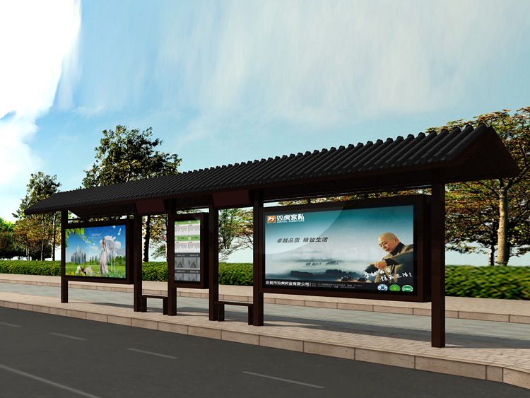 公交車候車亭一般是與公交站牌相配套的,為方便公交乘客候車時遮陽、防雨等,在車站、道路兩旁或綠化帶的港灣式公交停靠站上建設(shè)的交通設(shè)施。由于城市公交的日益發(fā)達(dá),候車亭已發(fā)展成為城市一個不可或缺的重要組成部分,設(shè)計精美的候車亭也成為了城市一道美麗的風(fēng)景。 一般候車亭棚體主要頂棚、立柱、頂弓、廣告燈箱和坐凳組成,也有用隔板來代替廣告燈箱的。