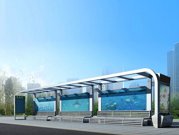 公交車候車亭一般是與公交站牌相配套的,為方便公交乘客候車時遮陽、防雨等,在車站、道路兩旁或綠化帶的港灣式公交?空旧辖ㄔO的交通設施。由于城市公交的日益發(fā)達,候車亭已發(fā)展成為城市一個不可或缺的重要組成部分,設計精美的候車亭也成為了城市一道美麗的風景。 一般候車亭棚體主要頂棚、立柱、頂弓、廣告燈箱和坐凳組成,也有用隔板來代替廣告燈箱的。