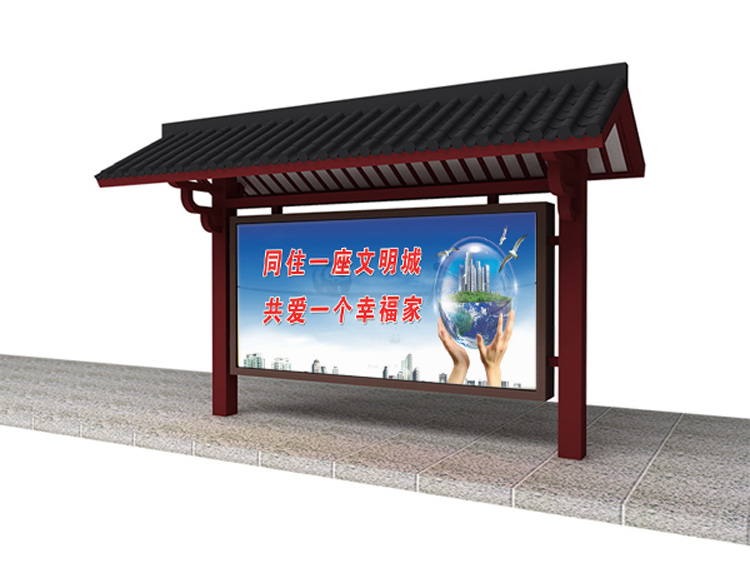公交車候車亭一般是與公交站牌相配套的,為方便公交乘客候車時遮陽、防雨等,在車站、道路兩旁或綠化帶的港灣式公交?空旧辖ㄔO(shè)的交通設(shè)施。由于城市公交的日益發(fā)達(dá),候車亭已發(fā)展成為城市一個不可或缺的重要組成部分,設(shè)計精美的候車亭也成為了城市一道美麗的風(fēng)景。 一般候車亭棚體主要頂棚、立柱、頂弓、廣告燈箱和坐凳組成,也有用隔板來代替廣告燈箱的。