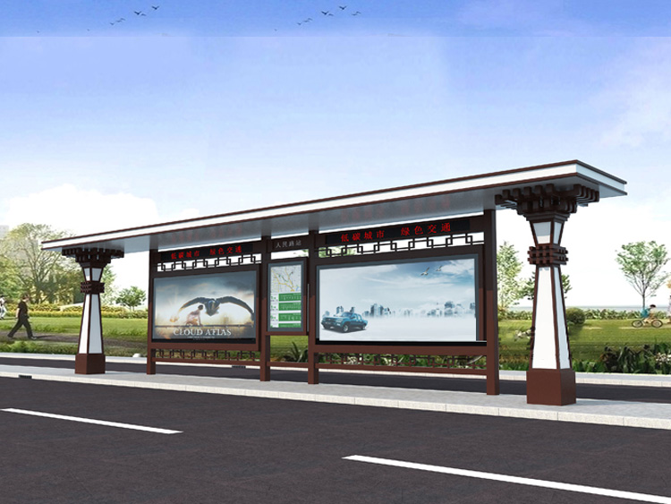 公交車候車亭一般是與公交站牌相配套的,為方便公交乘客候車時遮陽、防雨等,在車站、道路兩旁或綠化帶的港灣式公交?空旧辖ㄔO的交通設施。由于城市公交的日益發(fā)達,候車亭已發(fā)展成為城市一個不可或缺的重要組成部分,設計精美的候車亭也成為了城市一道美麗的風景。 一般候車亭棚體主要頂棚、立柱、頂弓、廣告燈箱和坐凳組成,也有用隔板來代替廣告燈箱的。