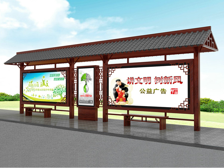 公交車候車亭一般是與公交站牌相配套的,為方便公交乘客候車時遮陽、防雨等,在車站、道路兩旁或綠化帶的港灣式公交?空旧辖ㄔO(shè)的交通設(shè)施。由于城市公交的日益發(fā)達(dá),候車亭已發(fā)展成為城市一個不可或缺的重要組成部分,設(shè)計精美的候車亭也成為了城市一道美麗的風(fēng)景。 一般候車亭棚體主要頂棚、立柱、頂弓、廣告燈箱和坐凳組成,也有用隔板來代替廣告燈箱的。