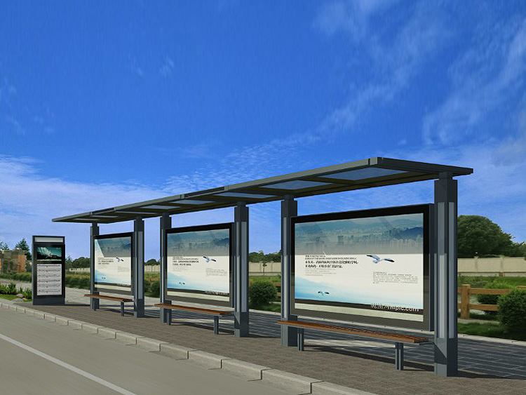 公交車候車亭一般是與公交站牌相配套的,為方便公交乘客候車時遮陽、防雨等,在車站、道路兩旁或綠化帶的港灣式公交停靠站上建設(shè)的交通設(shè)施。由于城市公交的日益發(fā)達(dá),候車亭已發(fā)展成為城市一個不可或缺的重要組成部分,設(shè)計精美的候車亭也成為了城市一道美麗的風(fēng)景。 一般候車亭棚體主要頂棚、立柱、頂弓、廣告燈箱和坐凳組成,也有用隔板來代替廣告燈箱的。