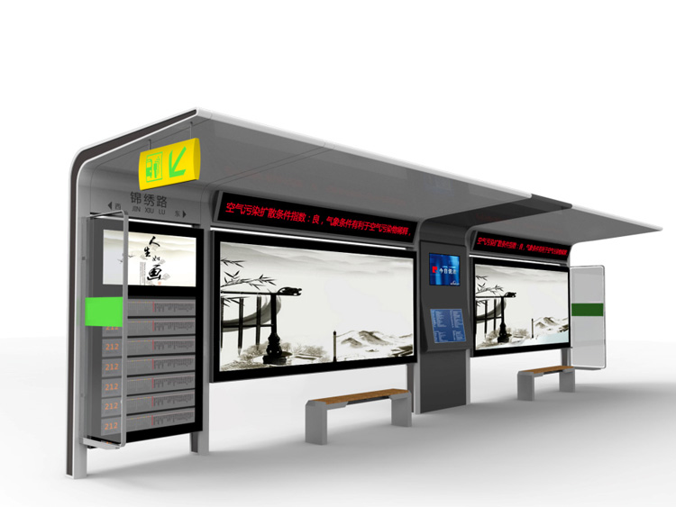公交車候車亭一般是與公交站牌相配套的,為方便公交乘客候車時(shí)遮陽、防雨等,在車站、道路兩旁或綠化帶的港灣式公交停靠站上建設(shè)的交通設(shè)施。由于城市公交的日益發(fā)達(dá),候車亭已發(fā)展成為城市一個(gè)不可或缺的重要組成部分,設(shè)計(jì)精美的候車亭也成為了城市一道美麗的風(fēng)景。 一般候車亭棚體主要頂棚、立柱、頂弓、廣告燈箱和坐凳組成,也有用隔板來代替廣告燈箱的。