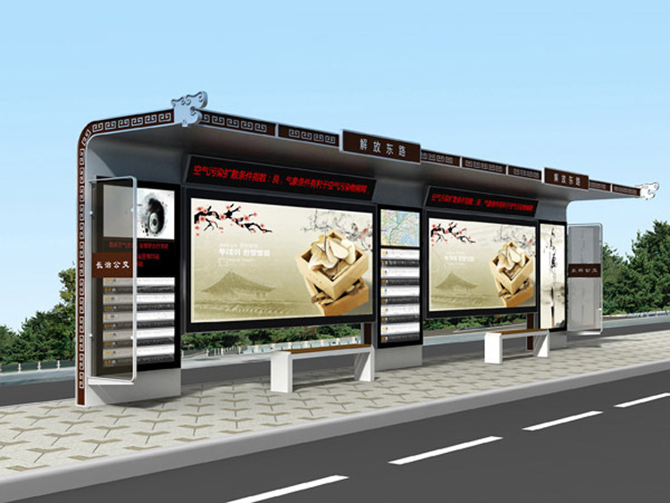 公交車候車亭一般是與公交站牌相配套的,為方便公交乘客候車時遮陽、防雨等,在車站、道路兩旁或綠化帶的港灣式公交?空旧辖ㄔO(shè)的交通設(shè)施。由于城市公交的日益發(fā)達(dá),候車亭已發(fā)展成為城市一個不可或缺的重要組成部分,設(shè)計精美的候車亭也成為了城市一道美麗的風(fēng)景。 一般候車亭棚體主要頂棚、立柱、頂弓、廣告燈箱和坐凳組成,也有用隔板來代替廣告燈箱的。