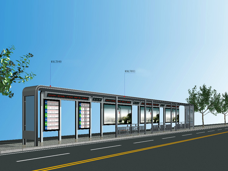 公交車候車亭一般是與公交站牌相配套的,為方便公交乘客候車時遮陽、防雨等,在車站、道路兩旁或綠化帶的港灣式公交?空旧辖ㄔO(shè)的交通設(shè)施。由于城市公交的日益發(fā)達,候車亭已發(fā)展成為城市一個不可或缺的重要組成部分,設(shè)計精美的候車亭也成為了城市一道美麗的風(fēng)景。 一般候車亭棚體主要頂棚、立柱、頂弓、廣告燈箱和坐凳組成,也有用隔板來代替廣告燈箱的。