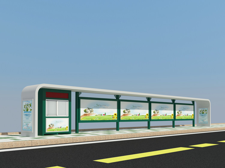 公交車候車亭一般是與公交站牌相配套的,為方便公交乘客候車時遮陽、防雨等,在車站、道路兩旁或綠化帶的港灣式公交停靠站上建設(shè)的交通設(shè)施。由于城市公交的日益發(fā)達(dá),候車亭已發(fā)展成為城市一個不可或缺的重要組成部分,設(shè)計精美的候車亭也成為了城市一道美麗的風(fēng)景。 一般候車亭棚體主要頂棚、立柱、頂弓、廣告燈箱和坐凳組成,也有用隔板來代替廣告燈箱的。