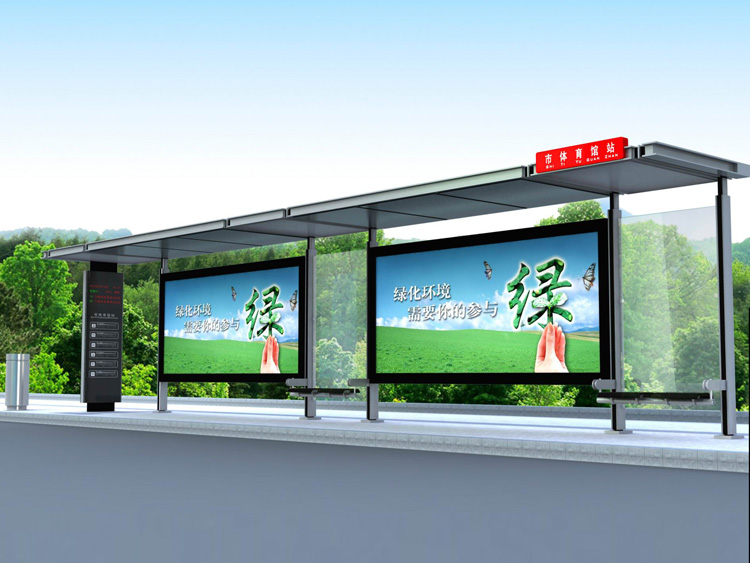 公交車候車亭一般是與公交站牌相配套的,為方便公交乘客候車時遮陽、防雨等,在車站、道路兩旁或綠化帶的港灣式公交?空旧辖ㄔO(shè)的交通設(shè)施。由于城市公交的日益發(fā)達,候車亭已發(fā)展成為城市一個不可或缺的重要組成部分,設(shè)計精美的候車亭也成為了城市一道美麗的風景。 一般候車亭棚體主要頂棚、立柱、頂弓、廣告燈箱和坐凳組成,也有用隔板來代替廣告燈箱的。