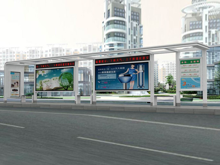 公交車候車亭一般是與公交站牌相配套的,為方便公交乘客候車時遮陽、防雨等,在車站、道路兩旁或綠化帶的港灣式公交?空旧辖ㄔO(shè)的交通設(shè)施。由于城市公交的日益發(fā)達,候車亭已發(fā)展成為城市一個不可或缺的重要組成部分,設(shè)計精美的候車亭也成為了城市一道美麗的風景。 一般候車亭棚體主要頂棚、立柱、頂弓、廣告燈箱和坐凳組成,也有用隔板來代替廣告燈箱的。