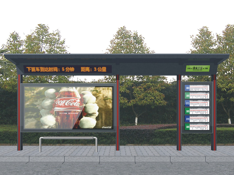 公交車候車亭一般是與公交站牌相配套的,為方便公交乘客候車時遮陽、防雨等,在車站、道路兩旁或綠化帶的港灣式公交?空旧辖ㄔO(shè)的交通設(shè)施。由于城市公交的日益發(fā)達,候車亭已發(fā)展成為城市一個不可或缺的重要組成部分,設(shè)計精美的候車亭也成為了城市一道美麗的風景。 一般候車亭棚體主要頂棚、立柱、頂弓、廣告燈箱和坐凳組成,也有用隔板來代替廣告燈箱的。
