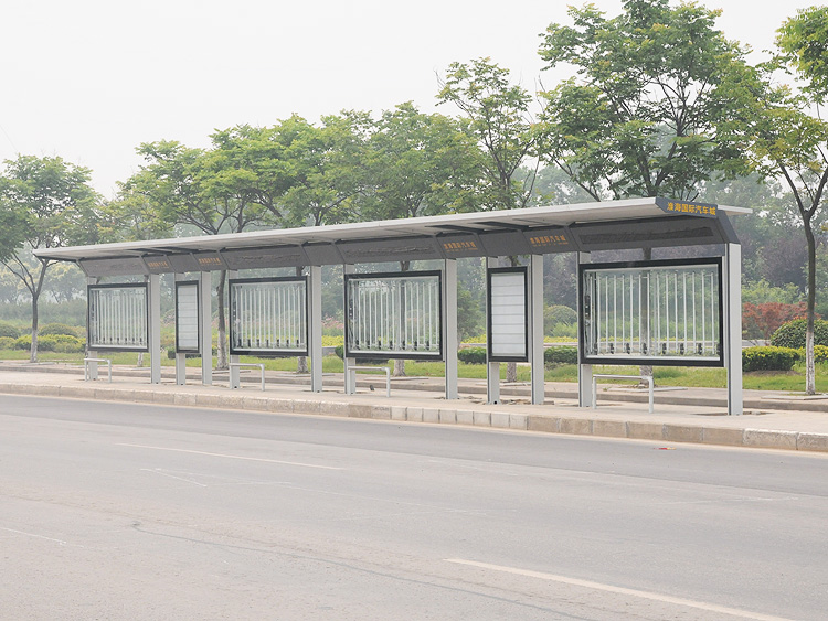 公交車候車亭一般是與公交站牌相配套的,為方便公交乘客候車時遮陽、防雨等,在車站、道路兩旁或綠化帶的港灣式公交?空旧辖ㄔO(shè)的交通設(shè)施。由于城市公交的日益發(fā)達,候車亭已發(fā)展成為城市一個不可或缺的重要組成部分,設(shè)計精美的候車亭也成為了城市一道美麗的風(fēng)景。 一般候車亭棚體主要頂棚、立柱、頂弓、廣告燈箱和坐凳組成,也有用隔板來代替廣告燈箱的。