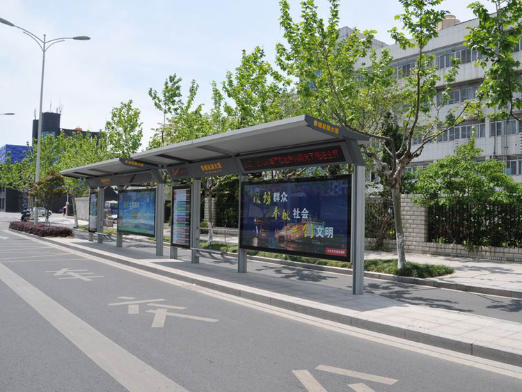 公交車候車亭一般是與公交站牌相配套的,為方便公交乘客候車時遮陽、防雨等,在車站、道路兩旁或綠化帶的港灣式公交?空旧辖ㄔO(shè)的交通設(shè)施。由于城市公交的日益發(fā)達(dá),候車亭已發(fā)展成為城市一個不可或缺的重要組成部分,設(shè)計精美的候車亭也成為了城市一道美麗的風(fēng)景。 一般候車亭棚體主要頂棚、立柱、頂弓、廣告燈箱和坐凳組成,也有用隔板來代替廣告燈箱的。
