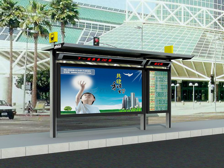 公交車候車亭一般是與公交站牌相配套的,為方便公交乘客候車時遮陽、防雨等,在車站、道路兩旁或綠化帶的港灣式公交?空旧辖ㄔO(shè)的交通設(shè)施。由于城市公交的日益發(fā)達,候車亭已發(fā)展成為城市一個不可或缺的重要組成部分,設(shè)計精美的候車亭也成為了城市一道美麗的風(fēng)景。 一般候車亭棚體主要頂棚、立柱、頂弓、廣告燈箱和坐凳組成,也有用隔板來代替廣告燈箱的。
